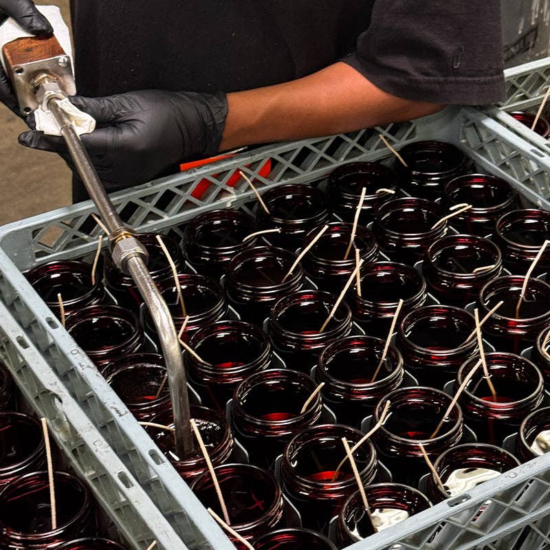Our candles are simple - they're all made with 100% domestically grown soy wax, fine fragrance oils, and cotton-core wicks. The fragrances we use are paraben-free, phthalate-free, and never (ever) tested on animals.