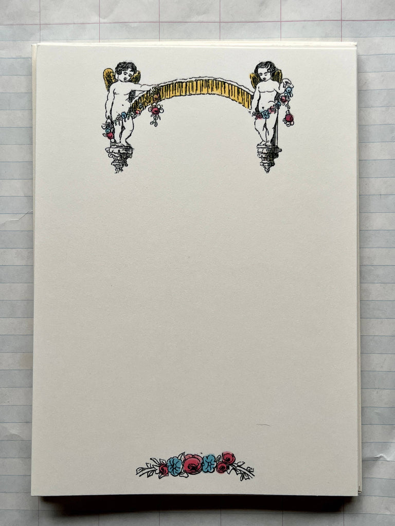 Process: printed Card size: flat 5"W X 7"H Paper: #110 cardstock Color: creamy white Envelope size: a7 Envelope color: creamy white Quantity: set of 8 Minimum: 3x per design