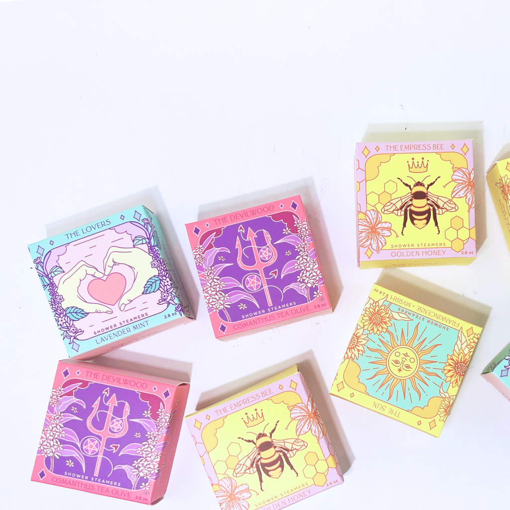 Awaken Love and Harmony 💜 Open your heart and restore balance with our Lovers Shower Steamer, beautifully packaged in the romantic design of the Lovers Tarot card—a symbol of love, connection and unity. Infused with the refreshing blend of lavender and mint, this steamer creates a soothing yet invigorating shower ritual that calms the mind and uplifts the spirit. Each box contains two shower steamers (2.8 oz total) for multiple relaxing experiences. Features ✨ • Tarot-Inspired Packaging • Lavender & Mint Aroma • Relaxing Aromatherapy Consciously Crafted 🌿 • Cruelty-Free & Vegan • Handmade in the USA • Sulfate & paraben free • Recyclable packaging How to Use 🚿 Place steamer in shower to activate with water—avoid direct spray for a longer-lasting effect. Care Tip ❤️ Keep sealed until ready to use to preserve fragrance. ⚠️ Warning For shower use only. Do not eat. May cause slippery surfaces. Ingredients Sodium Bicarbonate, Citric Acid, Sea Salt, Sodium Carbonate, Zea Mays (Corn) Starch, Glycerin, Wate