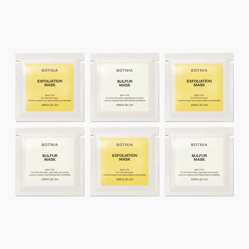 *This set includes six Exfoliation and six Sulfur masks. Mix with a liquid as directed below.