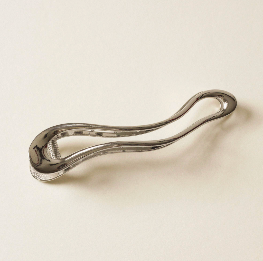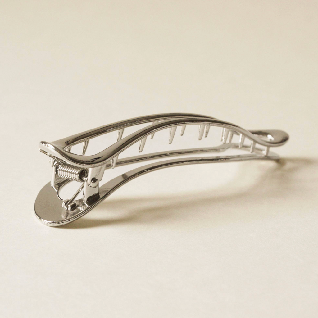 * This hair claw clip features a long organic shape with metal for a natural and minimal look. * Each clip is carefully crafted for a polished and refined finish. * It securely grips hair with its spring-loaded mechanism and sturdy teeth to prevent hair damage. * Suitable for use on straight, wavy, or curly hair. * Perfect for various occasions such as weddings, parties, or daily wear. * Dimension: 0.9" x. 4.2" * Material : Alloy